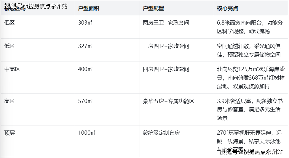 公寓产品单价区间稳定在15-20万/㎡,总价门槛为3000万元起,具体价格随户型面积、楼层及景观资源呈现差异:
